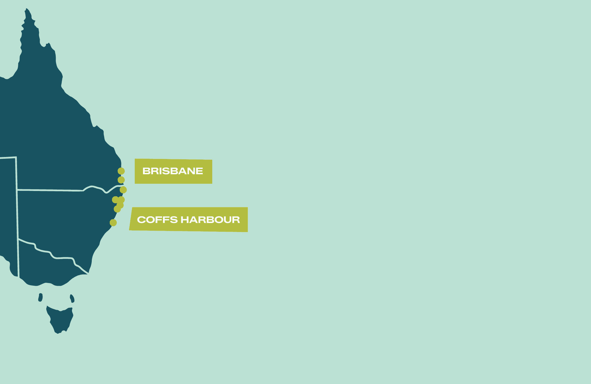 Our Positive Behaviour Support services are available nationally. Accommodation and in-person support services are delivered between Coffs Harbour and Brisbane, with a strong local presence across this region.